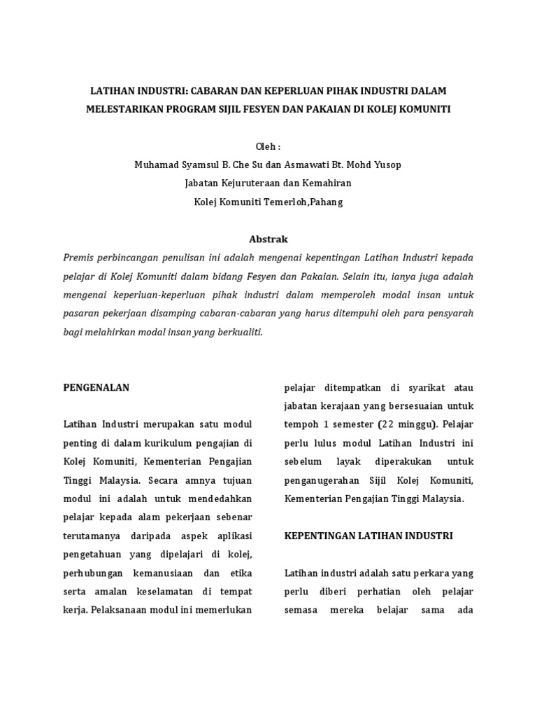 | Laporan Akhir Latihan Industri from 1.bp.blogspot.com Kajian oleh abd hair, rahmah, zulridah dan salma (2010) membuktikan budaya 4 pembelajaran berterusan dalam bentuk latihan formal mampu meningkatkan pengetahuan, kemahiran dan amalan baik seseorang pekerja. Antara objektif latihan industri diadakan adalah untuk membina personaliti individu. Latihan industri ini sedikit sebanyak memberi pengalaman serta kemahiran kepada pelajar untuk melakukan kerja selepas menamatkan pengajian kelak. Institut latihan dewan bandaraya, no. Bagi pelajar mengikuti jurusan ini, ia elemen terpenting dalam proses di kesempatan ini kami di page latihan industri bergaji penuh ingin mengucapkan selamat hari raya aidilfitri, maaf zahir dan batin. Abstrak latihan industri bagi fakulti perakaunan telah diwajibkan pada semester disember 2003. Maklumat pengalaman koordinator latihan industri bagi fakulti perakaunan berkenaaan dengan permasalahan, cabaran, halangan dan kaedah penyelesaian diawal pelaksanaannya. Kami yakin hasil latihan ini akan membina semangat dan sikap yang proaktif di kalangan pelatih dan bersedia menghadapi cabaran mendatang dengan penuh industri yang memberi peluang pekerjaan yang sangat besar dan amat menguntungkan.