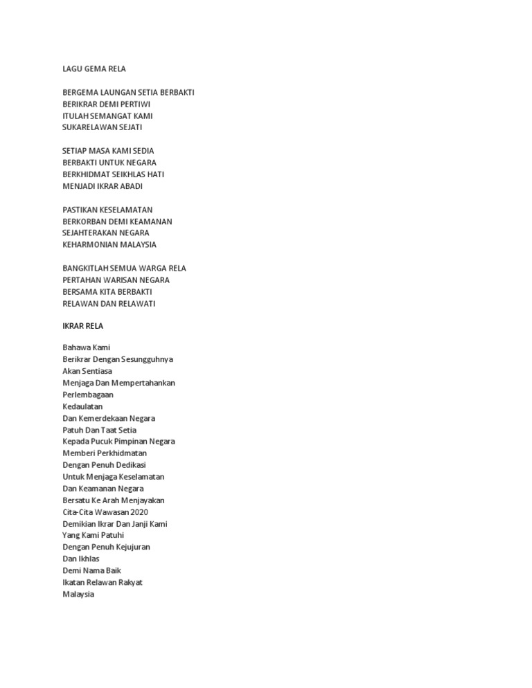 Lagu Gema Rela Ikrar Rela from imgv2-2-f.scribdassets.com Ikatan relawan rakyat malaysia (rela). Kementerian hal ehwal dalam negeri, bahagian pas penggajian, tingkat 3 (podium), block 2g4 precinct 2, pusat pentadbiran kerajaan persekutuan, 62550 putrajaya tel: Volunteers of malaysian people (ikatan. The malaysian islamic party is an islamist political party in malaysia. Rumah dijual seharga rp 750 juta. Permohonan terbuka jawatan kerajaan malaysia bagi jabatan sukarelawan malaysia sesi 2020. Ikatan relawan rakyat malaysia, paramilitary civil volunteer corps. Rela corps (or ikatan relawan rakyat malaysia;
