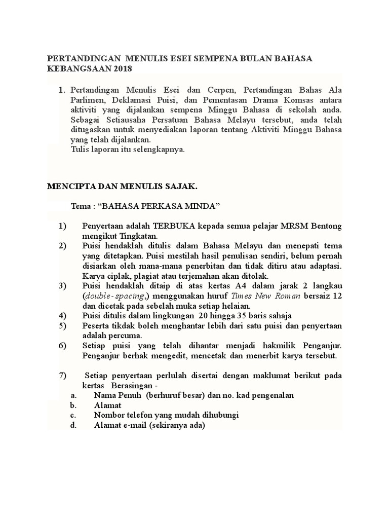 Pertandingan Menulis Cerpen 2019 Sketsa from sasteravaganza.files.wordpress.com Kemampuan menulis cerpen yang baik adalah hal penting bagi karir kepenulisan seorang penulis. Menulis awal cerita dalam satu waktu. Hallo para pembaca website informasi lomba tahun 2018, dalam kesempatan yang baik inilah kami akan menghadirkan adanya kompetisi menulis cerpen ehi 2018 yang mana dalam ajang kegiatan ini diselenggarakan sepenuhnya oleh event hunter indonesia. Dengan minggu bahasa melayu smk. Mengapa tidak pada langkah awal saja memeriksa tulisan ini ? 253 thoughts on lomba menulis cerpen, puisi dan esai terbaru. Kelab remaja ikatan muslimin malaysia(krim) menganjurkan satu pertandingan menulis cerpen. Menulis cerpen, puisi, esai, dan menerjemahkan buku.
