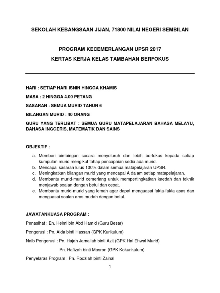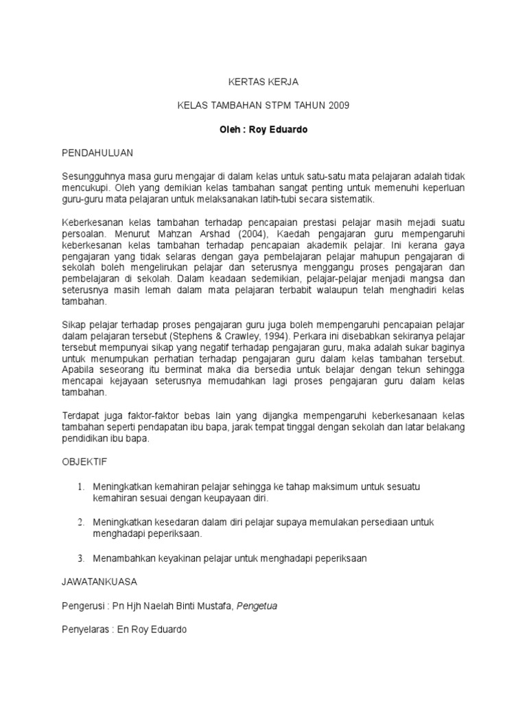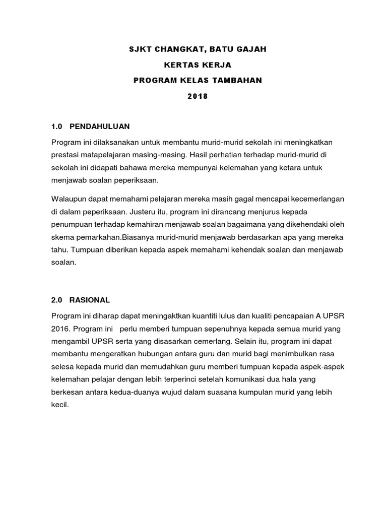 Kertas Kerja Kelas Tambahan Upsr Cuti Sekolah Tahun 2012 from reader020.staticloud.net Kertas kerja kelas tambahan sk kapar. Kerjasama tidak terbatas pada tempat, ia bisa dilakukan di sekolah, rumah dan juga lingkungan masyarakat. The copyright of the image is owned by the owner, this website only displays a few snippets of several keywords that are put together in a post summary. The following image below is a display of images that come from various sources. 83 contoh kertas kerja program sekolah. Panitia sejarah rm 1 00 3. Kertas kerja sambutan bulan kemerdekaan sk simpang tiga 2018. 3 kali untuk satu semester.